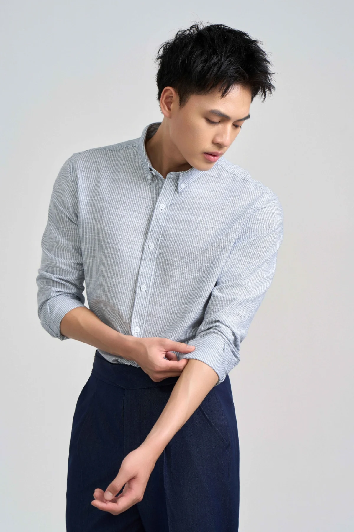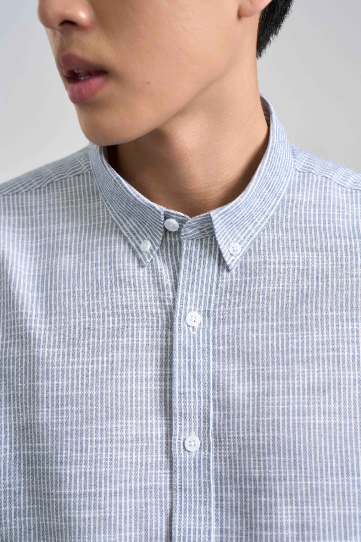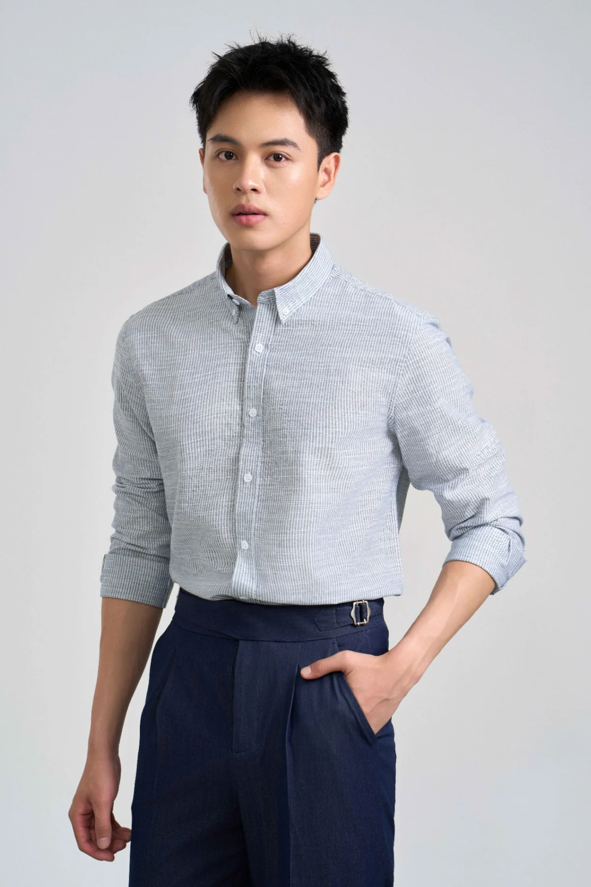 ► Áo sơ mi nam có ba phiên bản họa tiết kẻ: ghi, xanh dương và xanh tím than – dễ phối màu, tạo nên những outfit vừa nhẹ nhàng, vừa cá tính.
